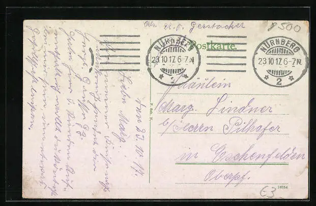 alte Ansichtskarte, gelaufen 1917, Stempelspur, Ecken bestoßen, Kante oben bestoßen, guter Zustand