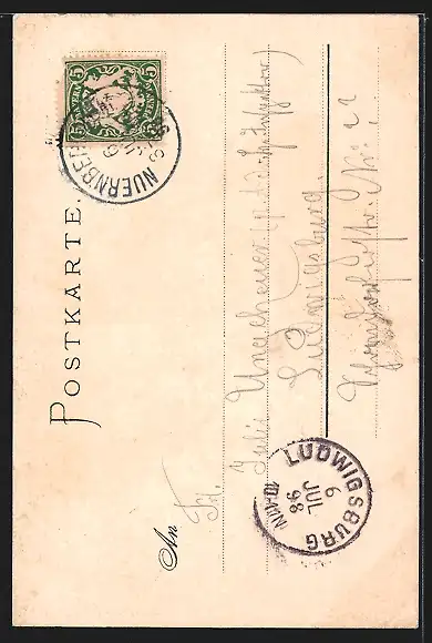 alte Ansichtskarte, gelaufen 1898, guter Zustand