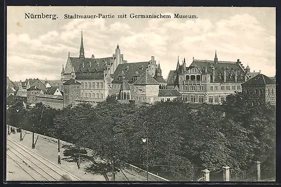 AK Nürnberg, Stadtmauer-Partie mit Germanischem Museum