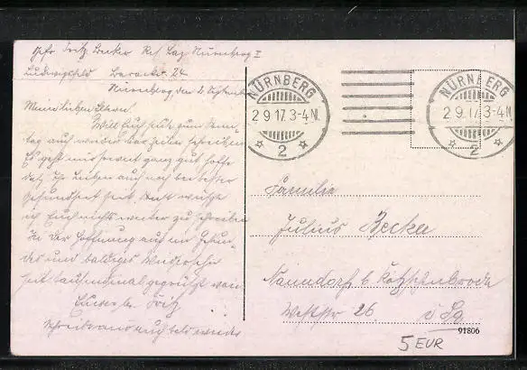 alte Ansichtskarte, gelaufen als Feldpost 1917, Eckknick oben rechts, guter Zustand