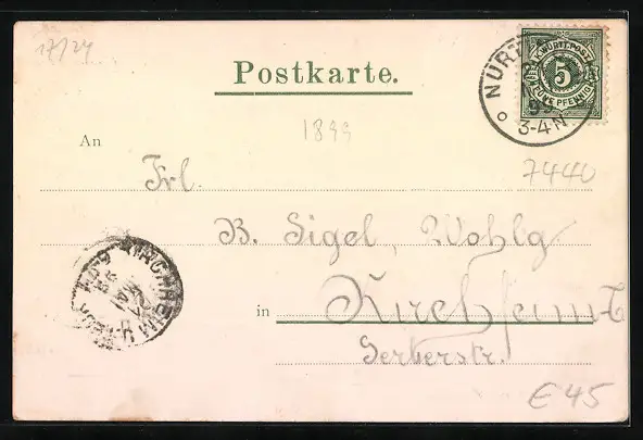alte Ansichtskarte, gelaufen 1899, guter Zustand