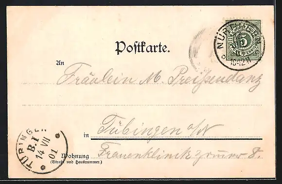 alte Ansichtskarte, gelaufen 1901, Stempelspur, guter Zustand