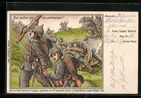 AK Nun wollen wir sie verdreschen! Soldaten im Gefecht, Propaganda 1. Weltkrieg