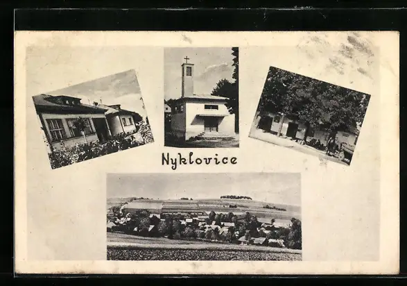 AK Nyklovice, Kirche, Wohnhaus, Ortspartie
