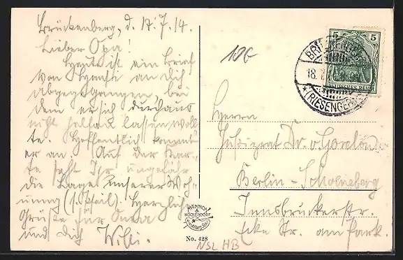 alte Ansichtskarte, gelaufen 1914, guter Zustand
