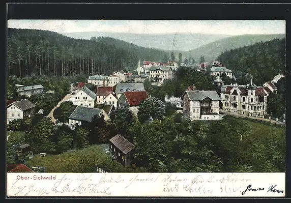 AK Ober-Eichwald, Ortsansicht aus der Vogelschau
