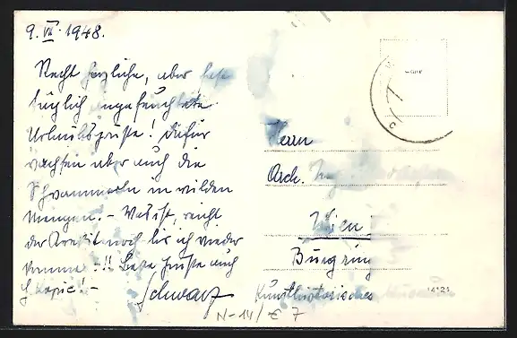 alte Ansichtskarte, gelaufen 1948, Briefmarke entfernt, guter Zustand