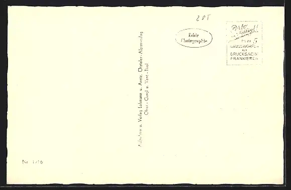 Personenbezogene Daten auf der Rückseite der Karte wurden durch blauen Textmarker unkenntlich gemacht. Die blauen Stellen sind auf die Vorderseite durchgeweicht und wirken sich negativ auf das Postkartenfoto aus