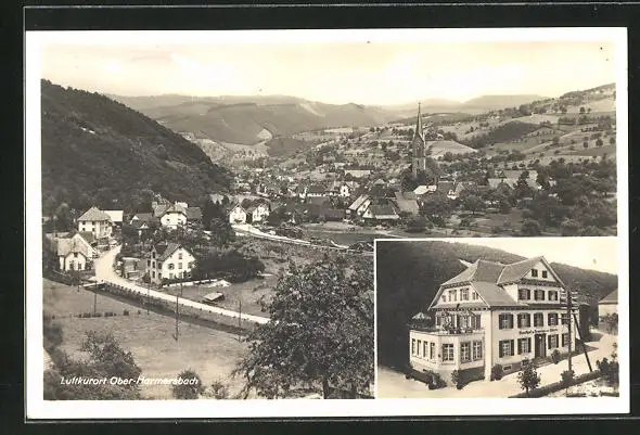 AK Ober-Harmersbach, Gasthaus zum Bären, Teilansicht mit Kirche