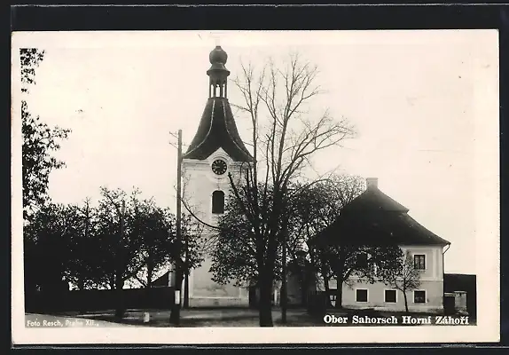 AK Ober Sahorsch, Ortspartie an der Kirche
