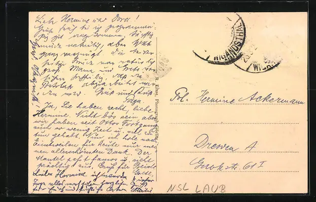 alte Ansichtskarte, gelaufen, Briefmarke entfernt, guter Zustand