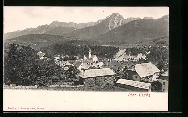 AK Ober-Tarvis, Ortspartie mit Bergen