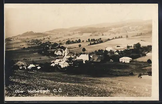 AK Ober-Weissenbach /O.-Ö., Totalansicht von einen Berg aus