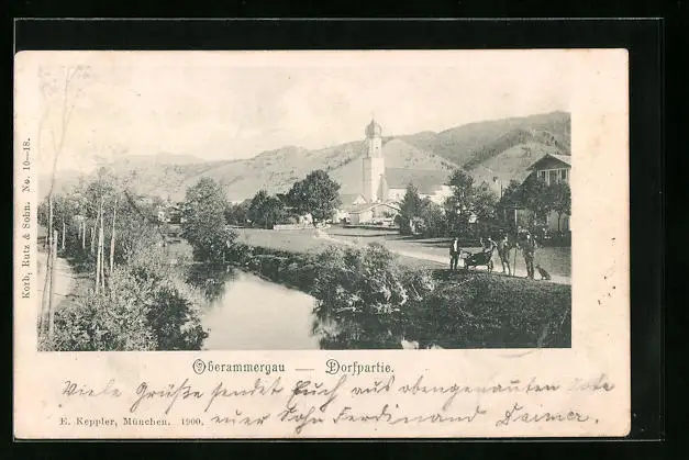AK Oberammergau, Dorfpartie mit Bewohnern