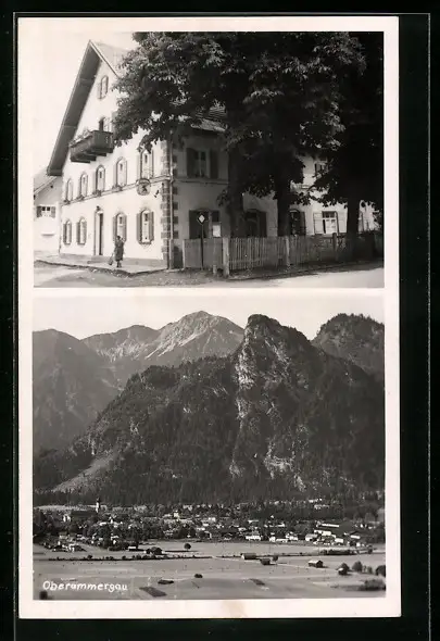 AK Oberammergau, Gasthof Rose, Ortsansicht aus der Vogelschau