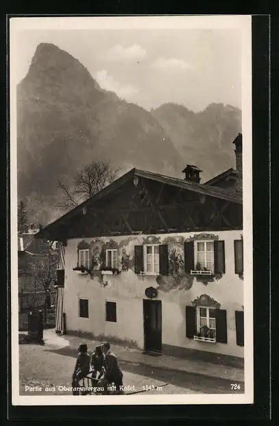 AK Oberammergau, Ortspartie mit Kofel