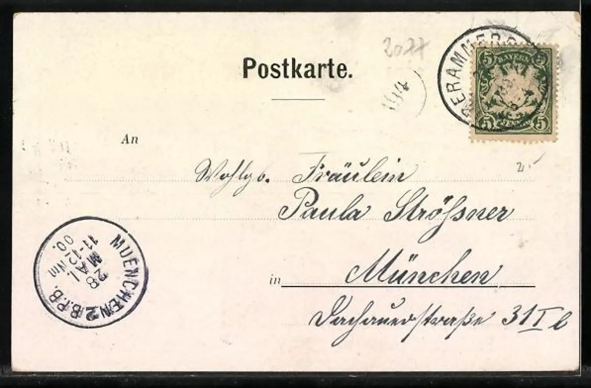 alte Ansichtskarte, gelaufen 1900, Eckknick li. oben, guter Zustand