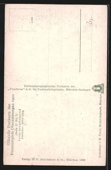 AK Oberammergau, Passionsspiele 1922, Schauspieler Anton Lang im Kostüm als Jesus trägt ein Kreuz
