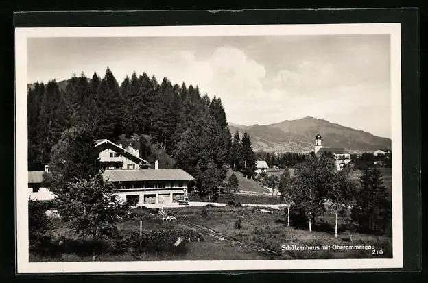 AK Oberammergau, Schützenhaus mit Teilansicht des Ortes