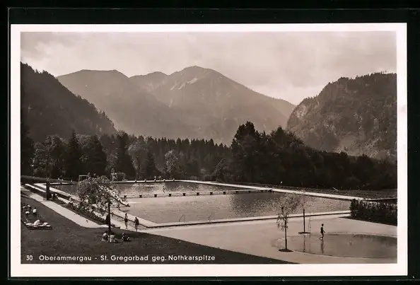 AK Oberammergau, St. Gregorbad gegen Nothkarspitze