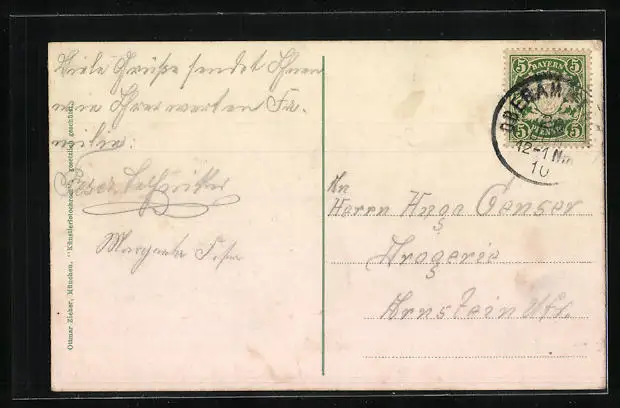 alte Ansichtskarte, gelaufen 1910, guter Zustand