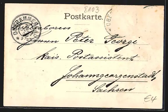 alte Ansichtskarte, gelaufen 1900, Briefmarke entfernt, guter Zustand