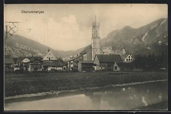 AK Oberammergau, Teilansicht mit Kirche