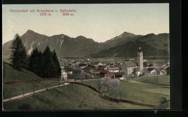 AK Oberaudorf, Ortsansicht mit Kranzhorn u. Spitzstein