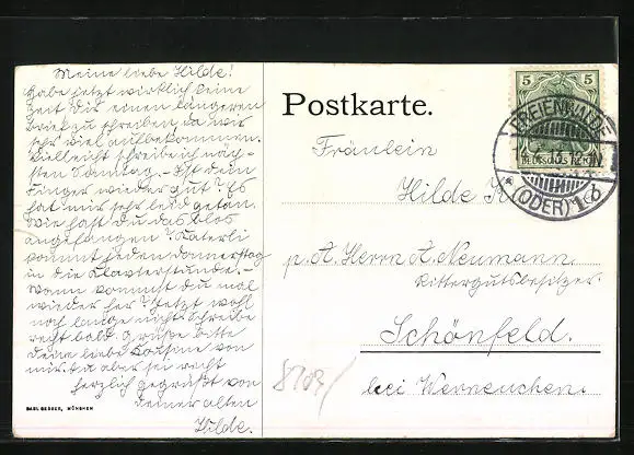 alte Ansichtskarte, gelaufen 1913, Eckknicke re. oben u. li. unten, Einriss re. mittig, guter Zustand