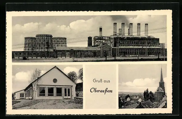 AK Oberaussem, Kraftwerk, Weisses Gebäude, Teilansicht mit Kirche