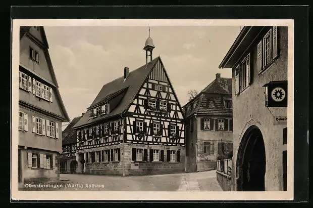 AK Oberderdingen /Württ., Strassenpartie mit Rathaus