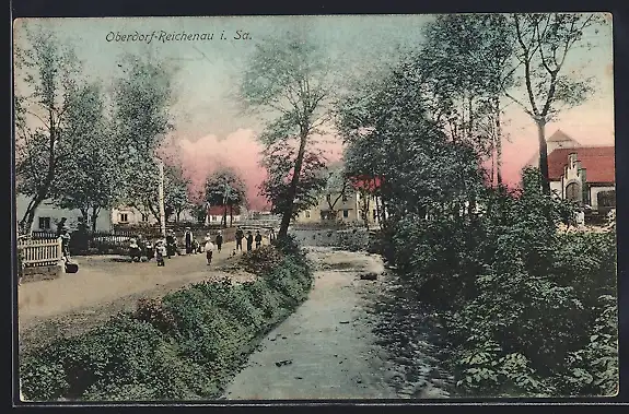 AK Oberdorf-Reichenau i. Sa., Flusspartie im Ort