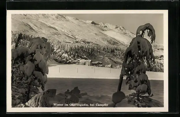 AK Oberengadin b. Campfer, Ortsansicht im Schnee