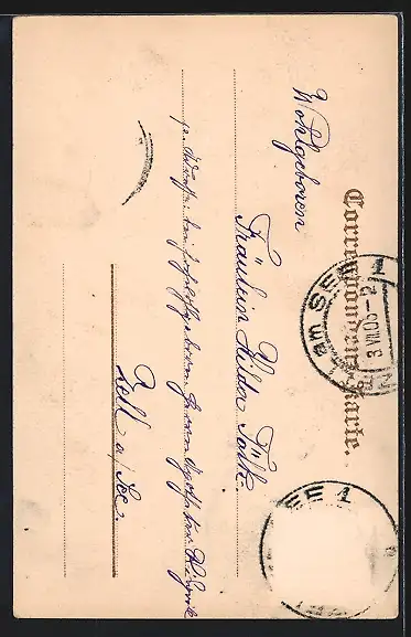 alte Ansichtskarte, gelaufen 1905, Briefmarke entfernt, rückseitig Oberflächenschaden, guter Zustand