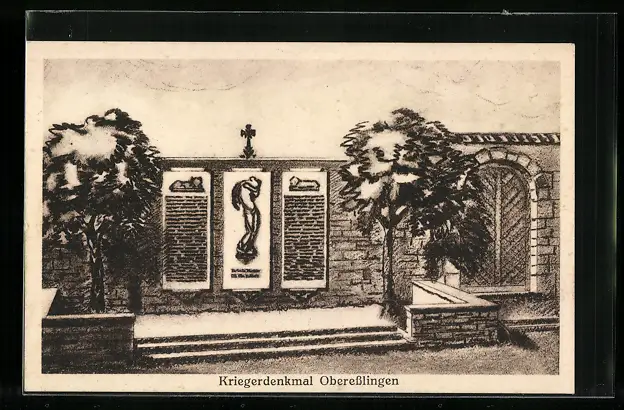 AK Oberesslingen, Ansicht des Kriegerdenkmals