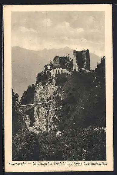 AK Oberfalkenstein /Tauernbahn, Gratschacher Viadukt und Ruine