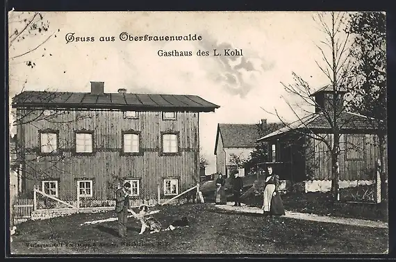 AK Oberfrauenwalde, Gasthaus des L. Kohl, Hund gibt Pfötchen