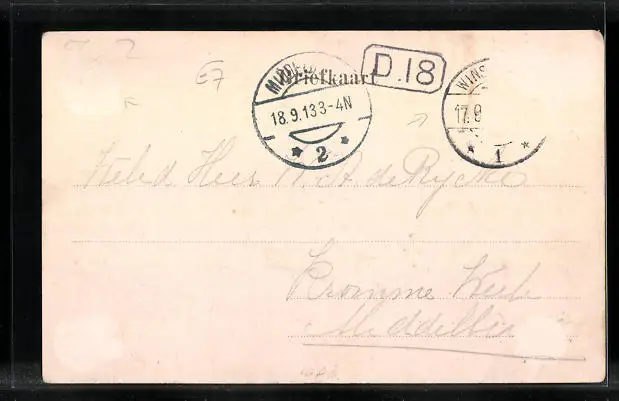 alte Ansichtskarte, gelaufen 1913, Briefmarke entfernt, rückseitig Oberflächenschaden, guter Zustand