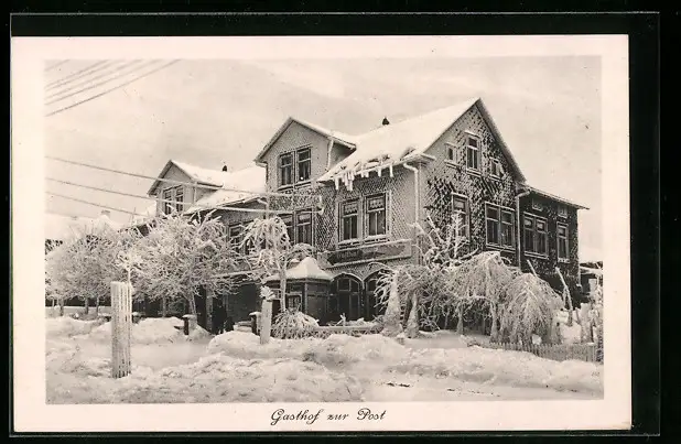 AK Oberhof /Th., Gasthof zur Post im Winter