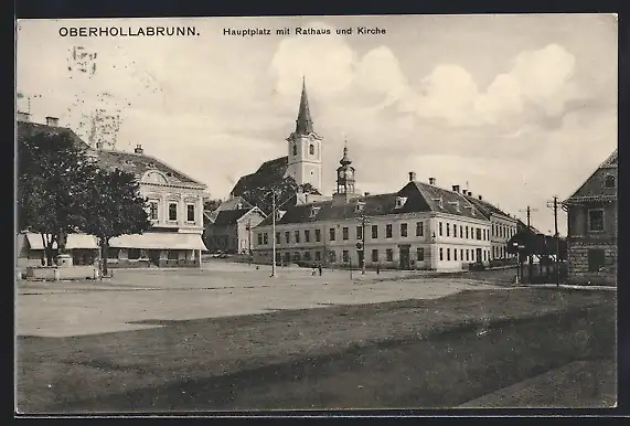 AK Oberhollabrunn, Hauptplatz mit Rathaus und Kirche