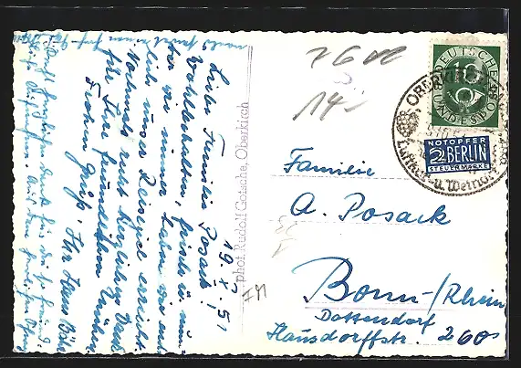 alte Ansichtskarte, gelaufen 1951, Eckknick li. oben, guter Zustand