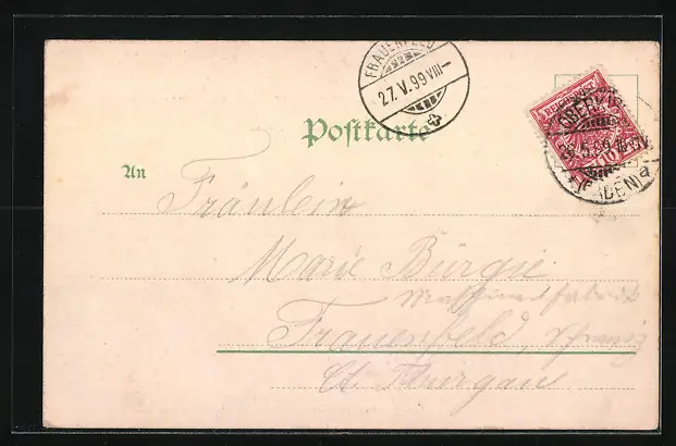 alte Ansichtskarte, gelaufen 1899, Stempelspur, guter Zustand