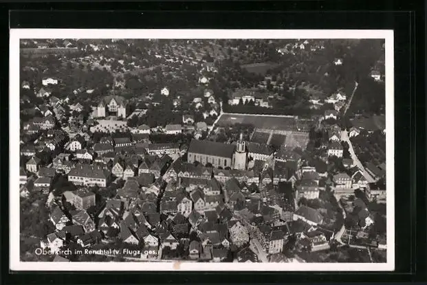 AK Oberkirch im Renchtal, Ortsansicht vom Flugzeug aus