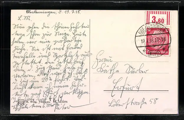alte Ansichtskarte, gelaufen 1938, Stempelspur, guter Zustand