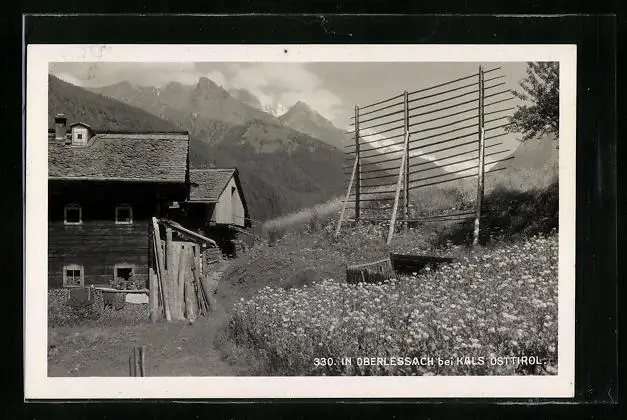 AK Oberlessach, Ortspartie mit Bergpanorama