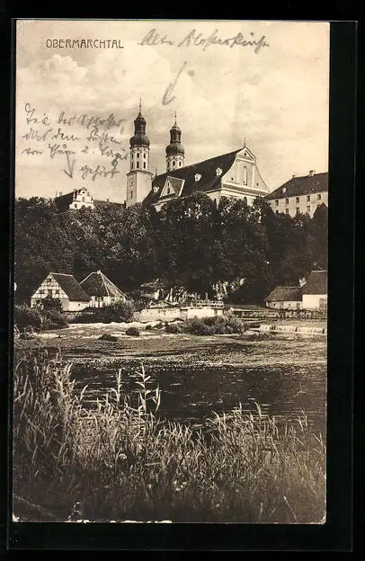 AK Obermarchtal, Ortsansicht vom Wasser aus