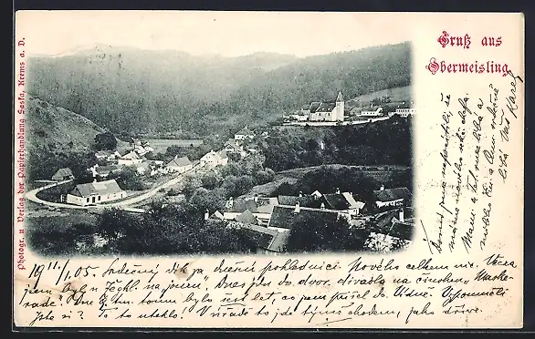 AK Obermeisling, Ortsansicht aus der Vogelschau