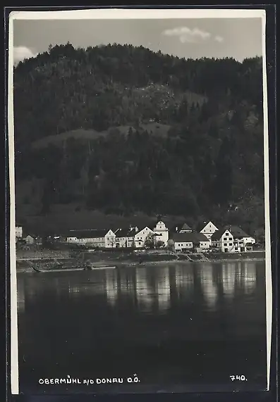 AK Obermühl a. d. Donau, Ortsansicht mit Flusspartie