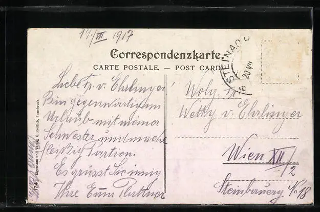 alte Ansichtskarte, gelaufen 1917, Briefmarke entfernt, guter Zustand