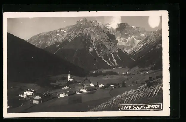 AK Obernberg, Ortspartie mit Kirche und Bergen